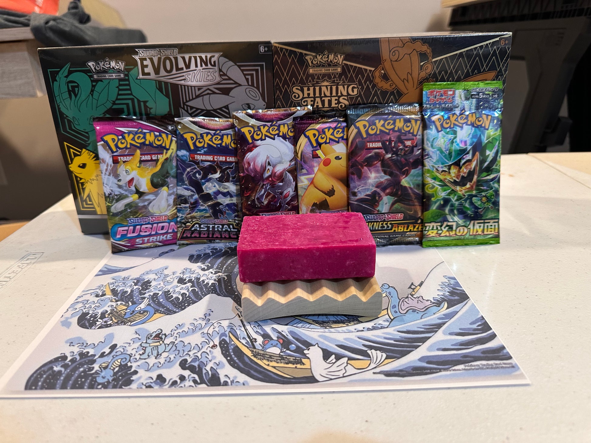 Raspberry Scrub Cold Process Soap Bar W/ choice of a Pokemon Booster Pack